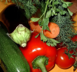 Клубника, облепиха, малина, смородина красная, вишня, кабачок, огурцы, помидоры, морковь.